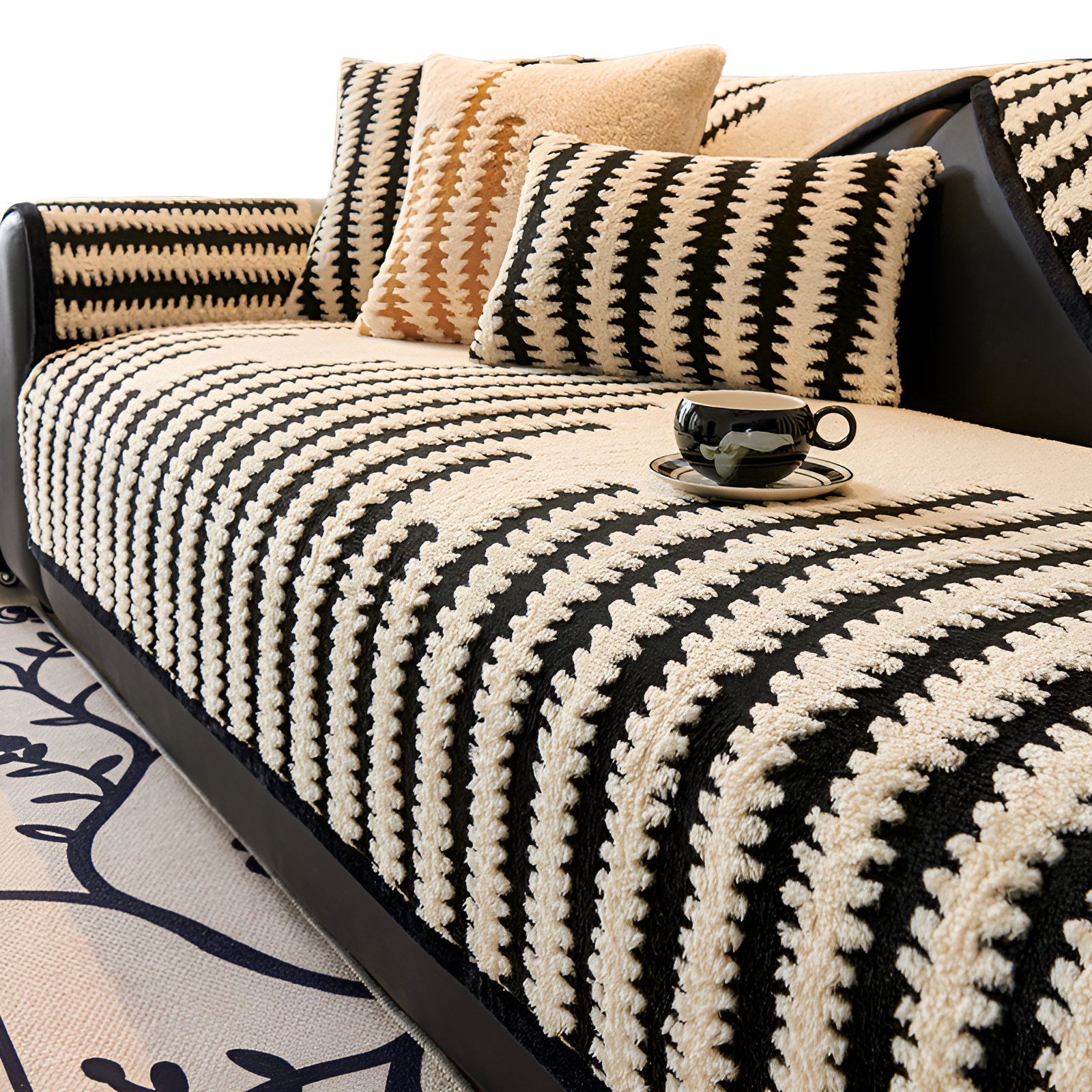 Verdicktes rutschfestes Retro-Plüsch-Leder-Sofakissen für Herbst und Winter